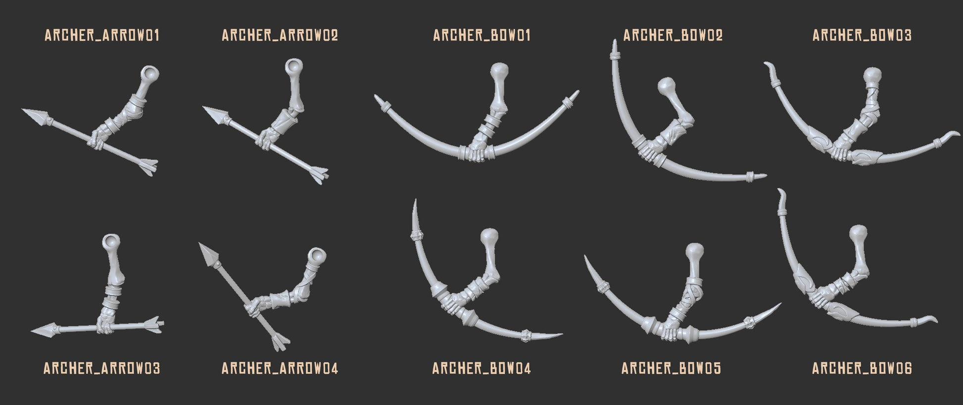 • 6 Skeleton Archers (buildable) with bow, arrow, and quiver options