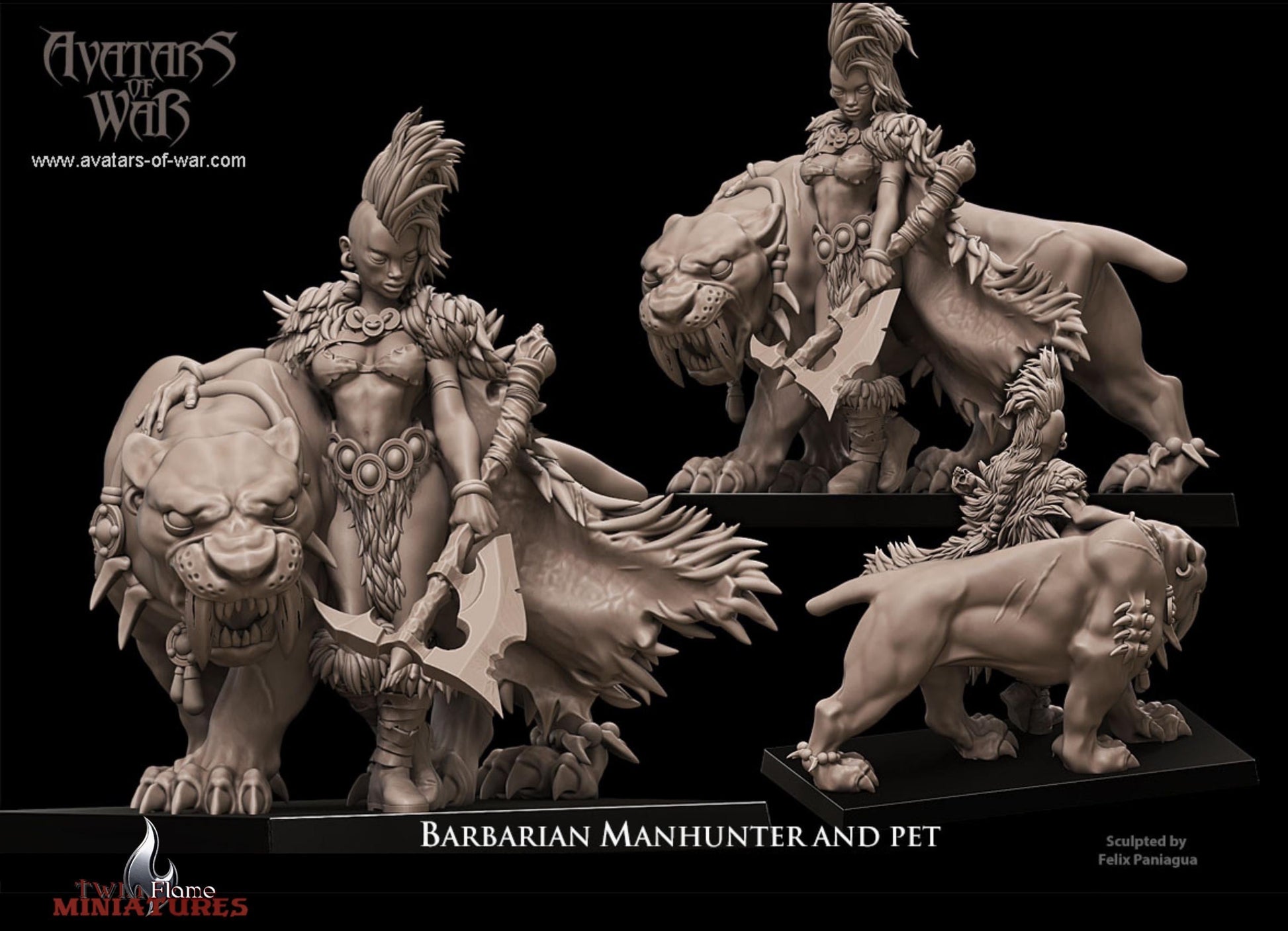Barbarian Manhunters & Sabertooths Set | Male, Female & Mounted Barbarian Rider