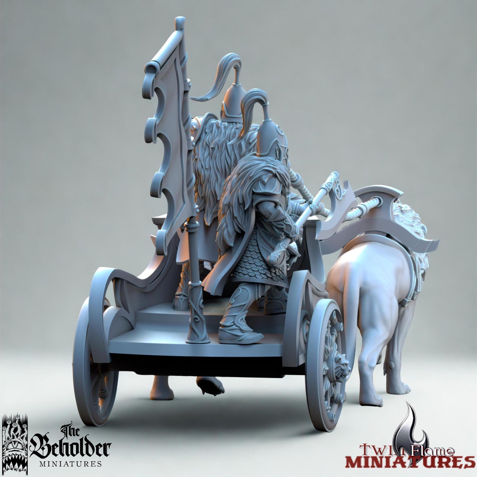 Pulled by powerful lion war-beasts